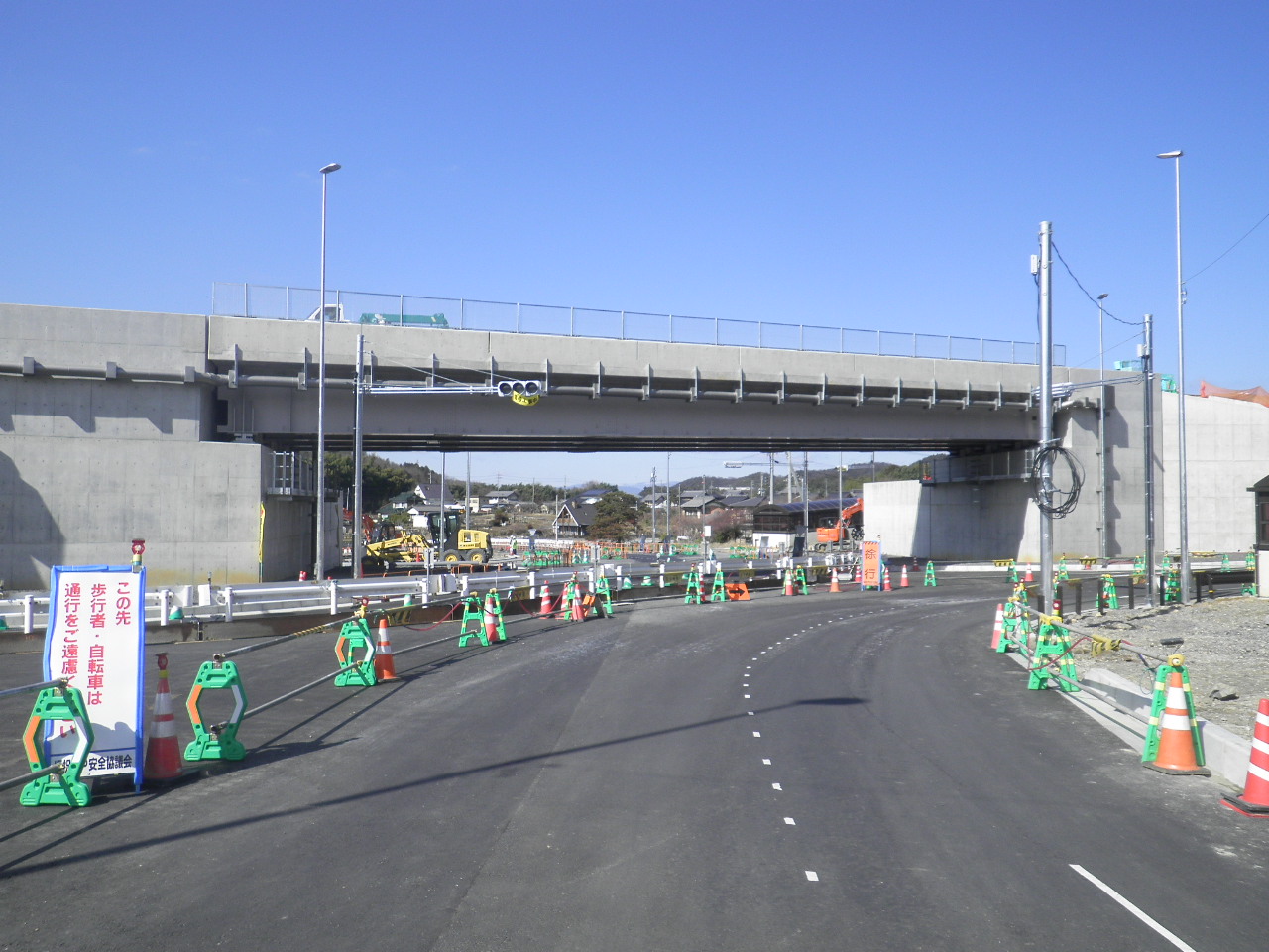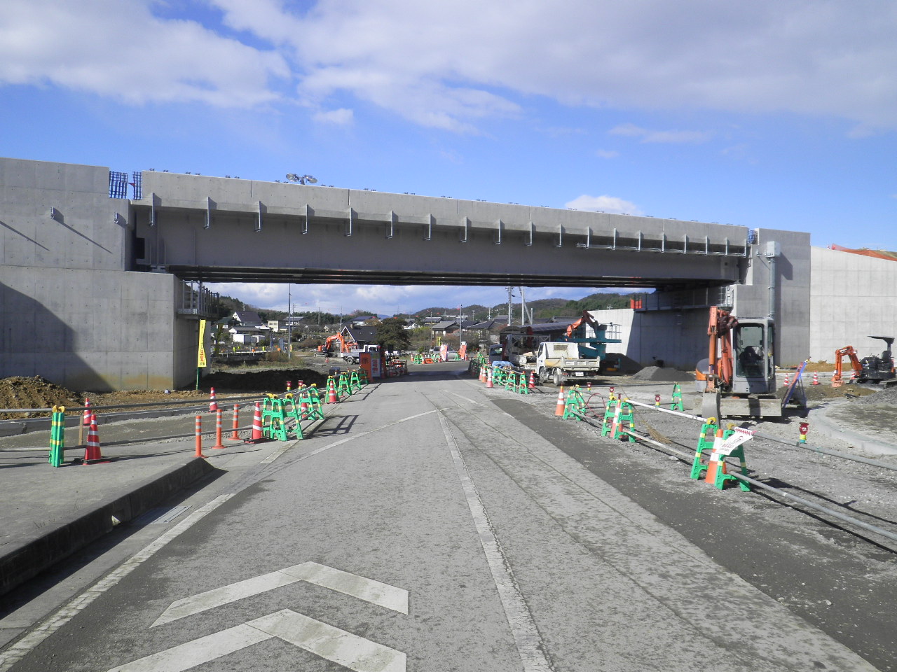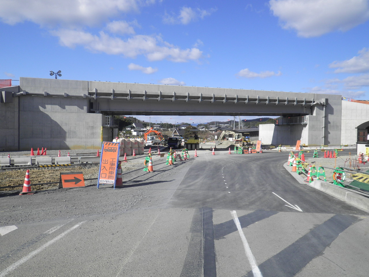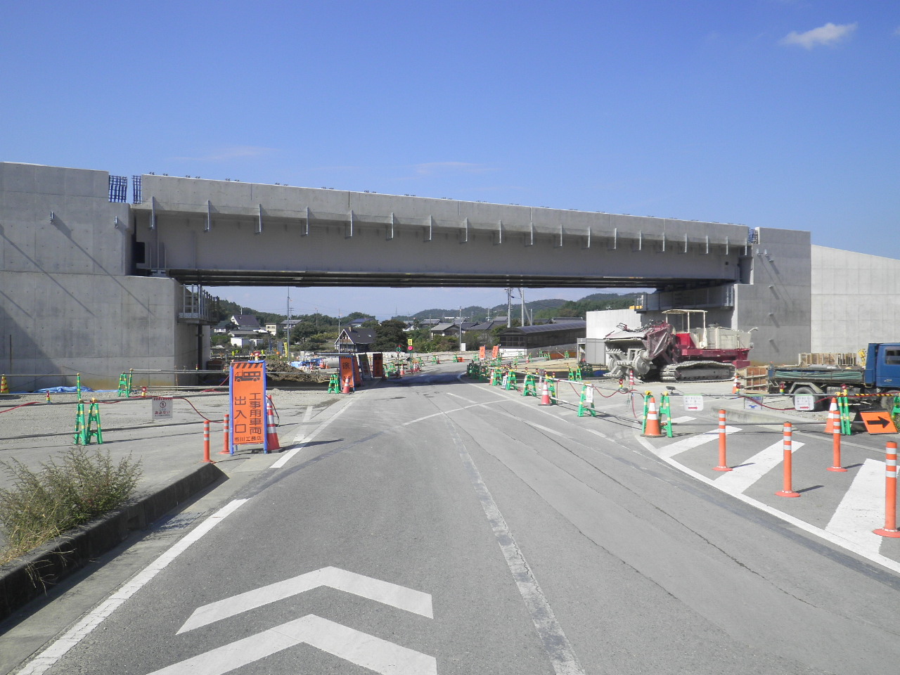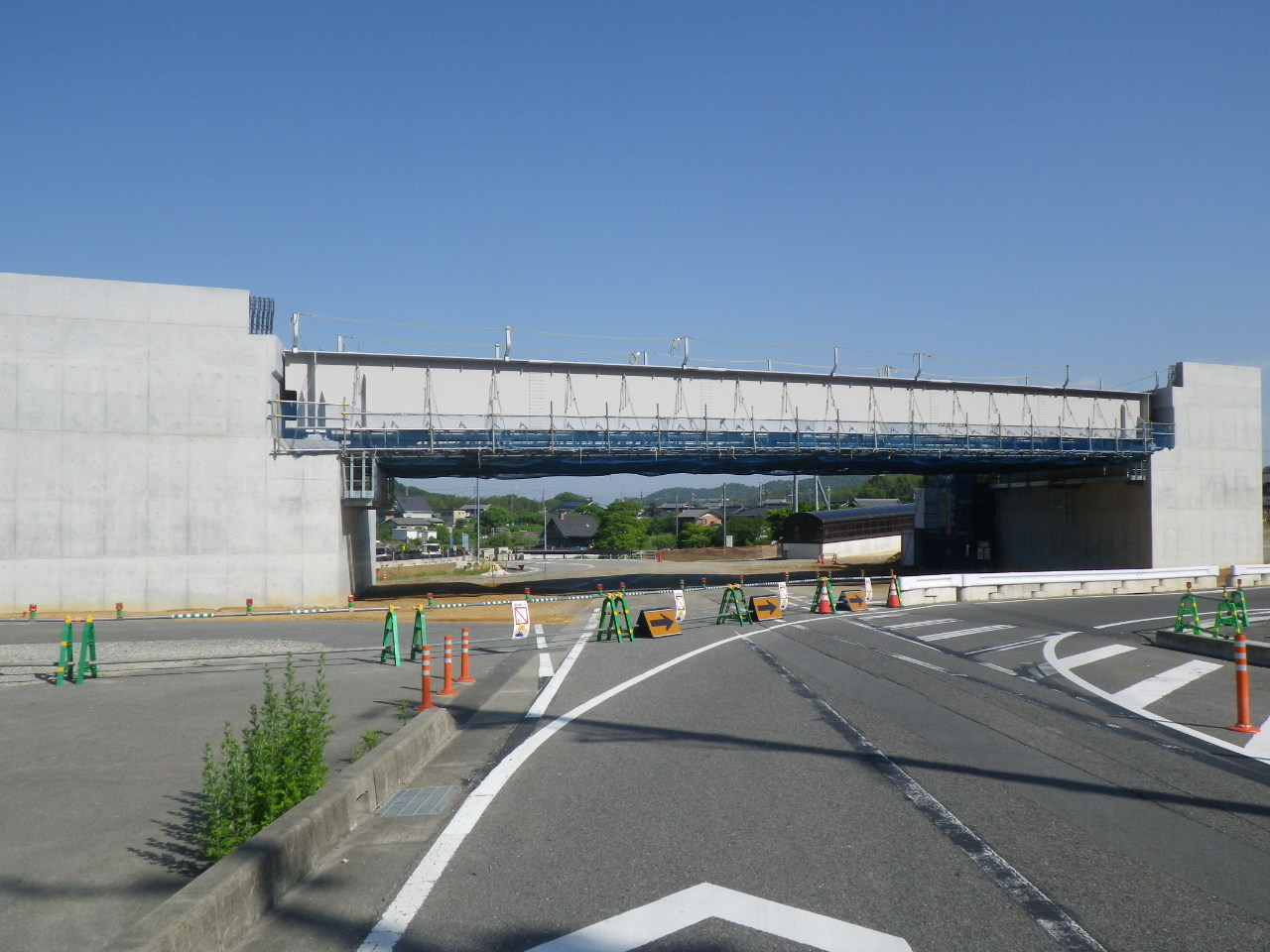 勝山IC橋の工事を行っています。切廻し町道(通学路)について通行注意をお願いします。