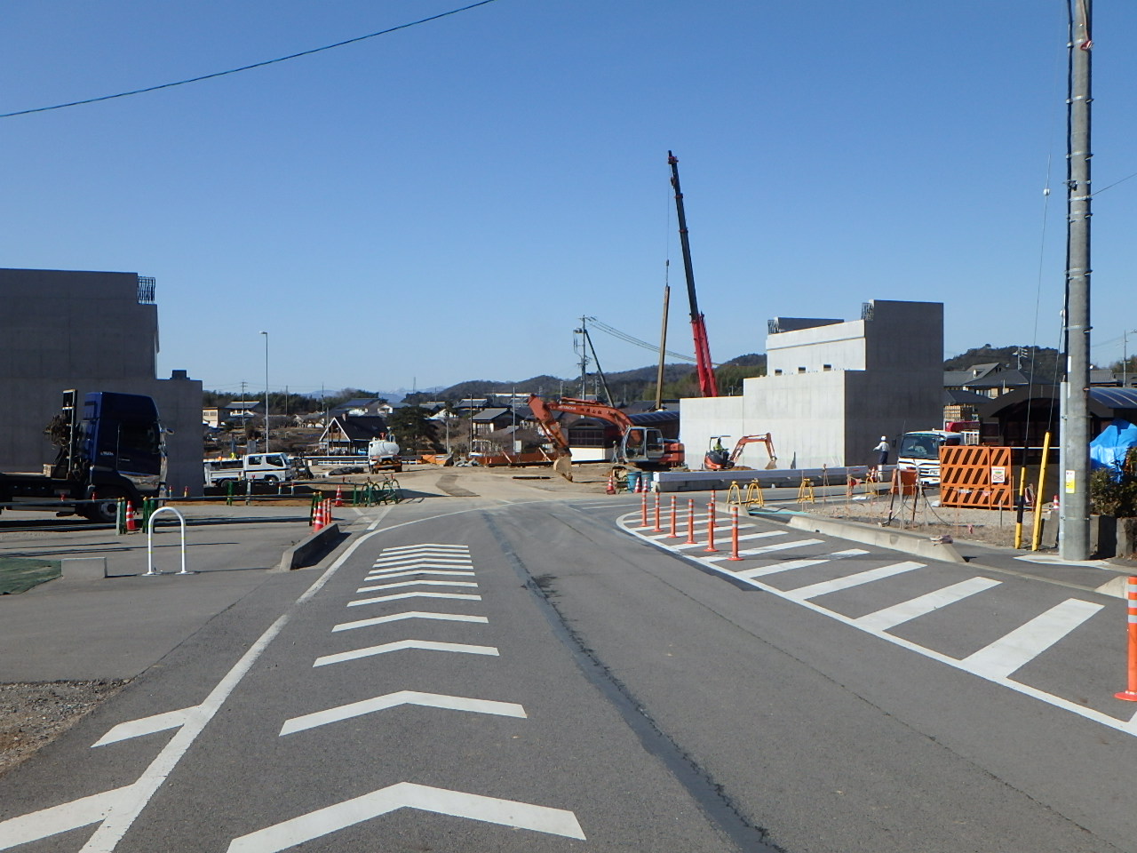 勝山IC橋交差点の工事を行っています。切廻し町道(通学路)について通行注意をお願いします。