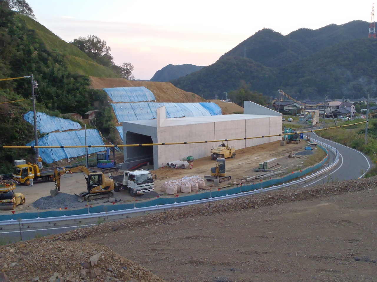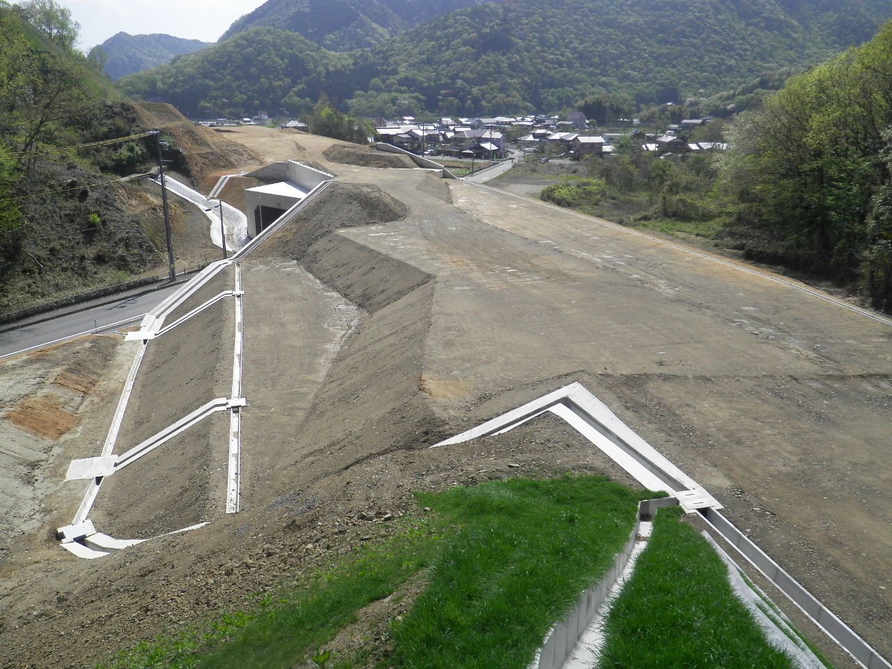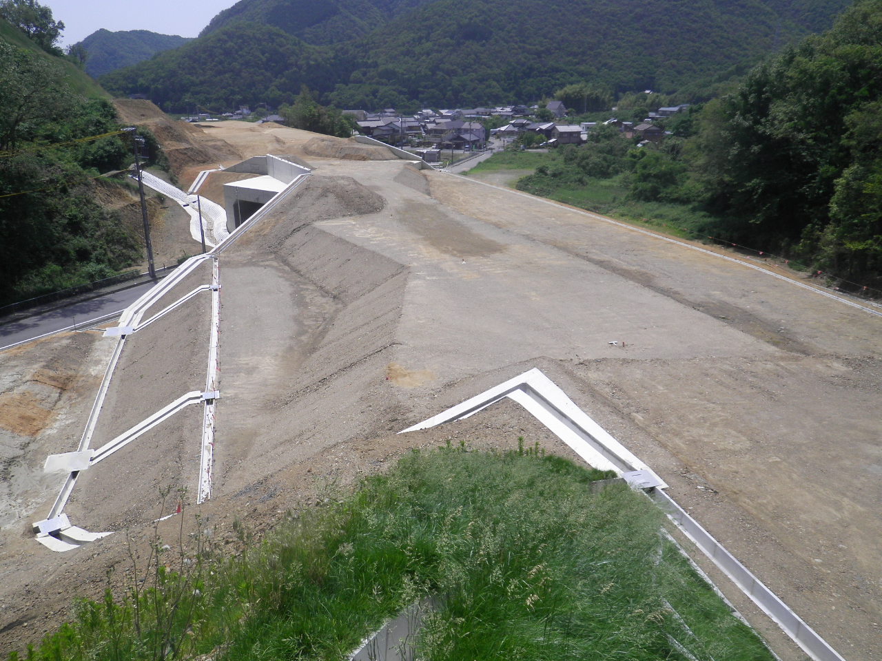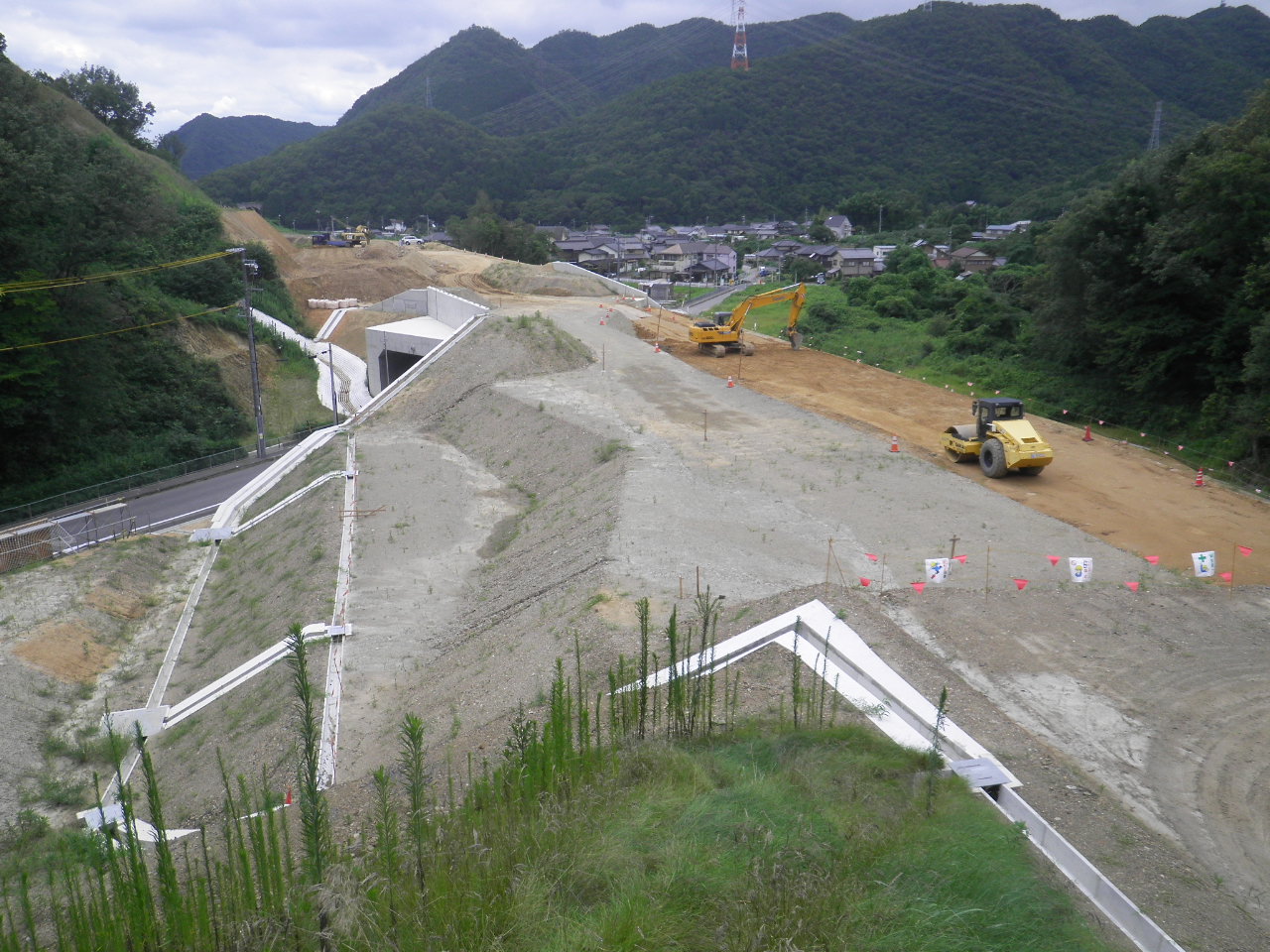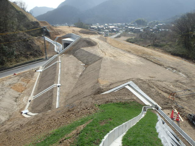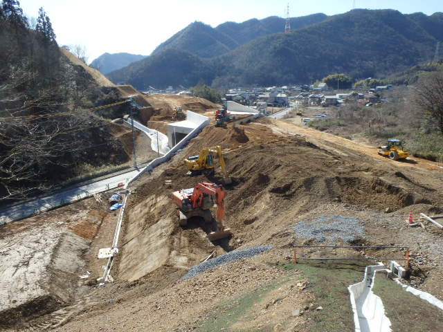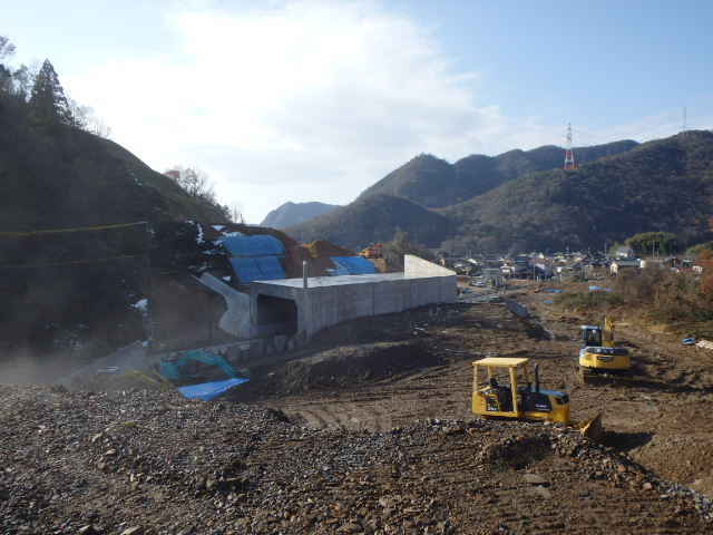 断函渠の前後の路体盛土を行っています。