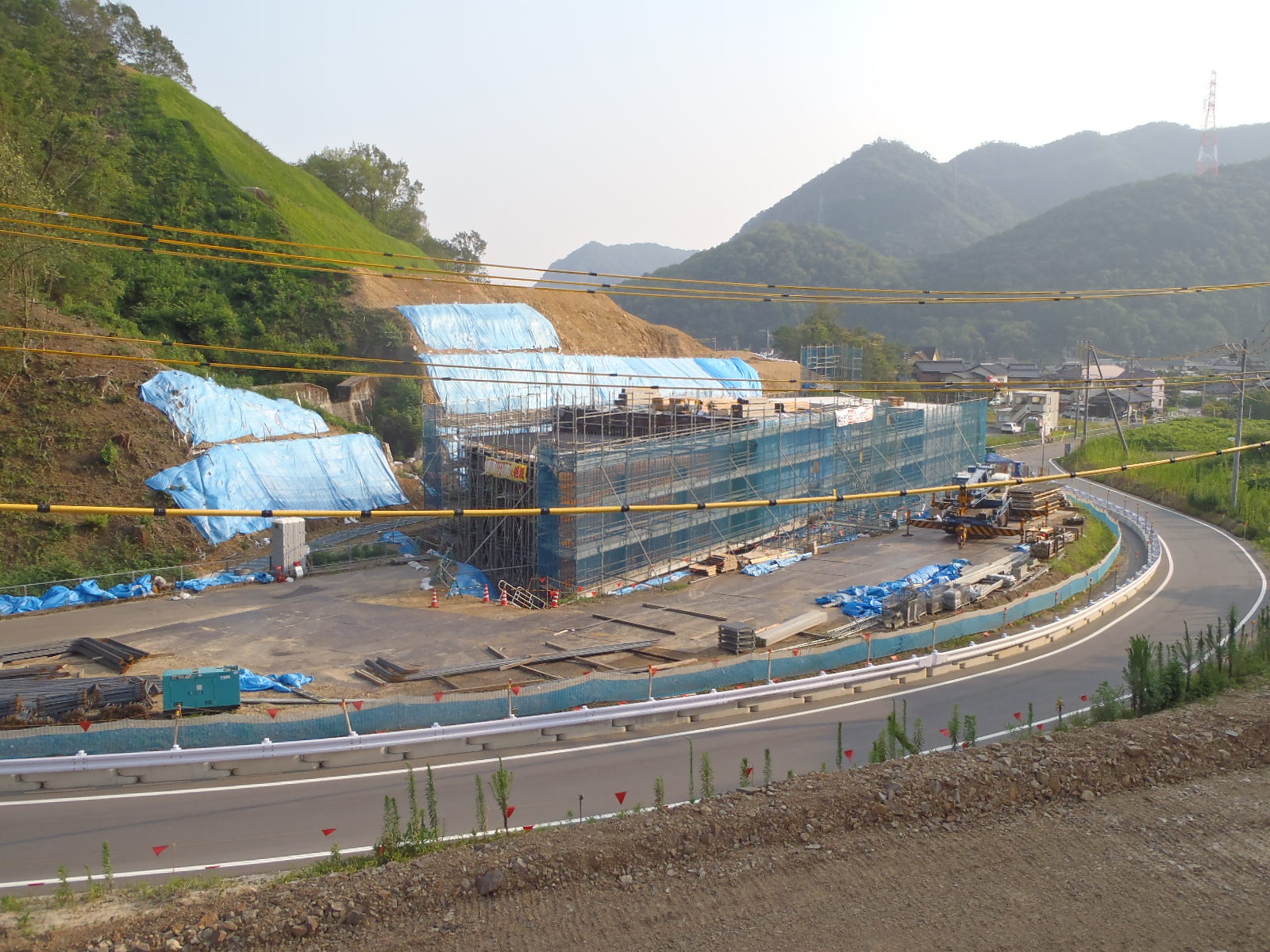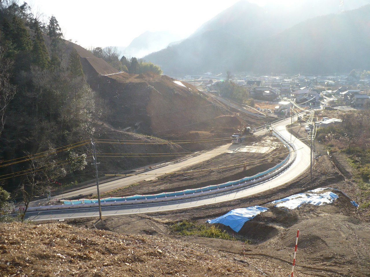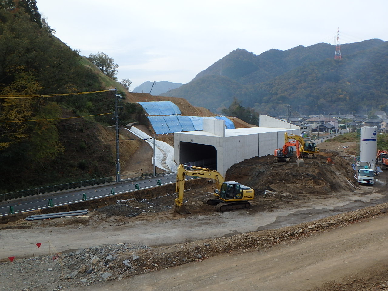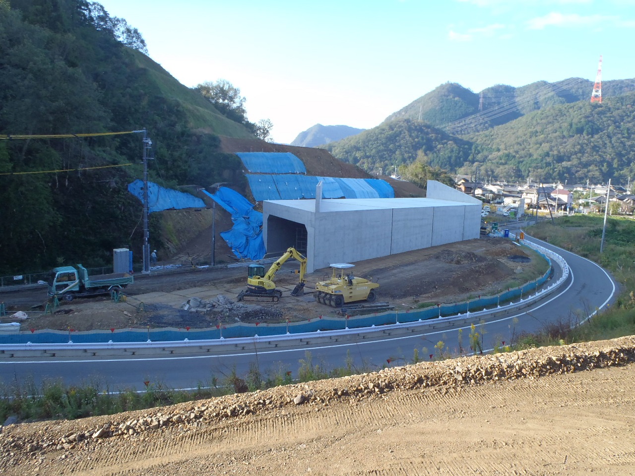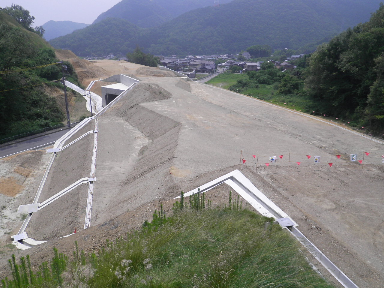 断函渠の前後の路体盛土を行っています。