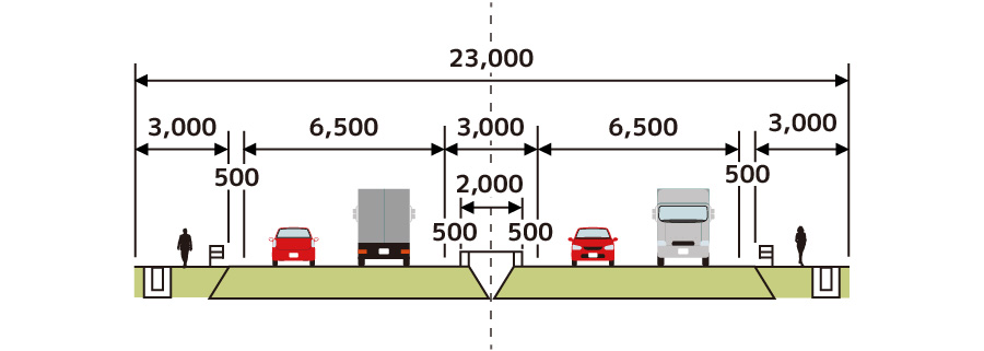 瑞浪バイパス標準横断面図(単位:mm)