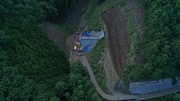砂防堰堤の施工のための道路をつくっています。 |