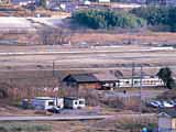 土地をかさあげする治水工事が最盛期を迎え、盛土に小さな川路駅が押しつぶされそうに見える。この後、線路はかさあげされた土地に付け替えられ、駅も埋められた。 |