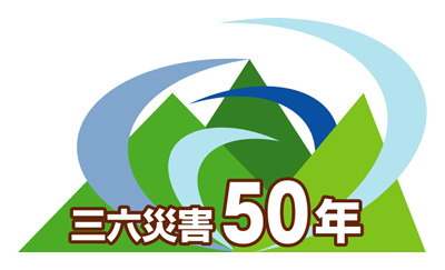 このロゴマークは、災害を「青の風雨」で、復興を「緑の山」で、そして半世紀を経た今を「50」で表現し、三六災害と同じ風雨が起きても、同じ災害を起こさせないという願いを込めています。