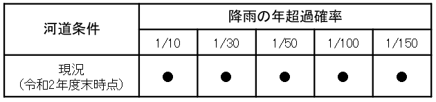 ※年超過確率 1/〇〇:毎年、1年間にその規模を超える現象が発生する確率が 1/〇〇であることをいう。
