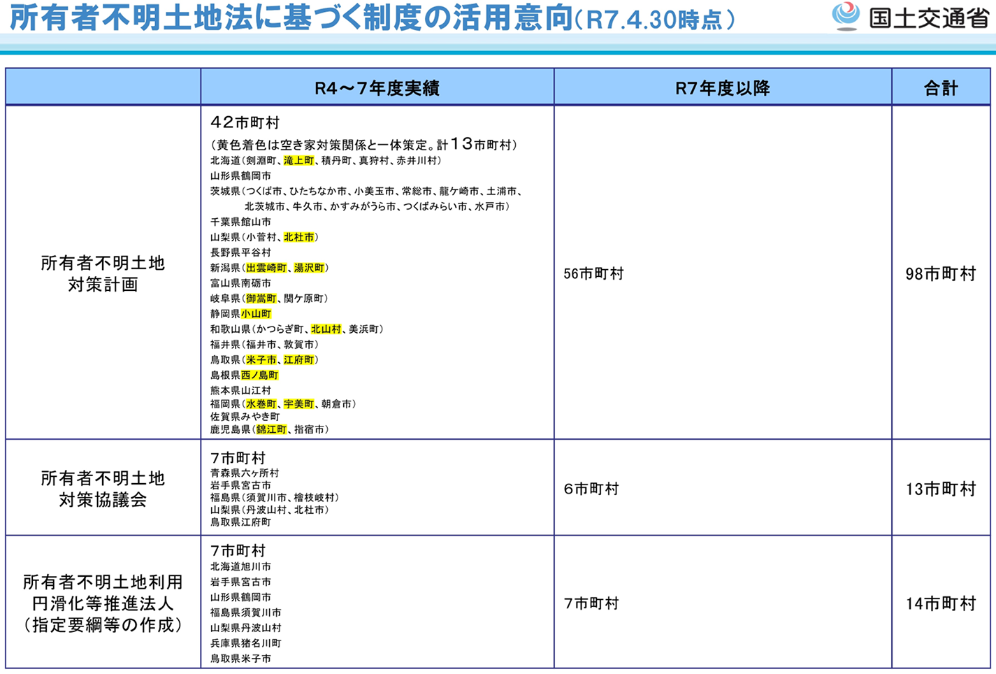 活用事例(所有者不明土地対策計画・モデル事業等)